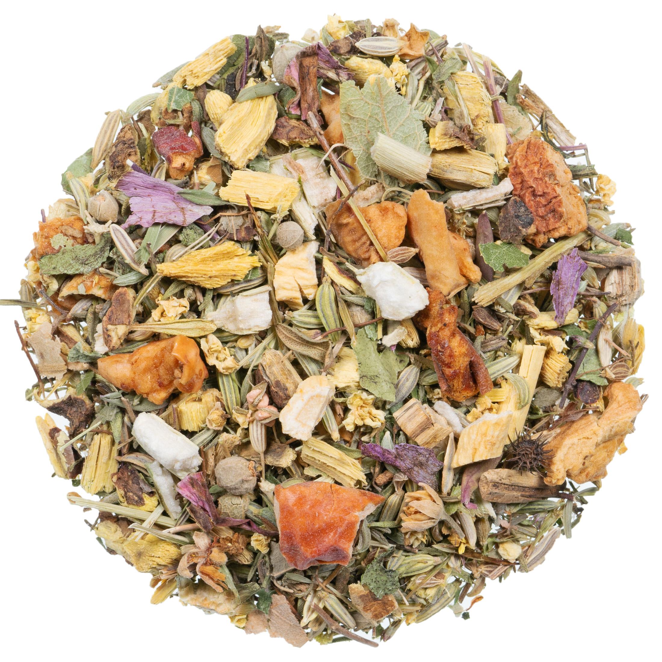 Zutaten: Fenchel, Apfelstücke, Süßholzwurzel, Thymian, Anis, Quendelkraut, Sonnenhutkraut, Silberlindenblüten, Holunderblüten, Ginsengwurzel, Vitamin C (1,5%), Zinkgluconat (0,5%)