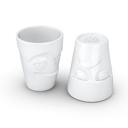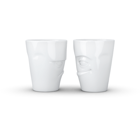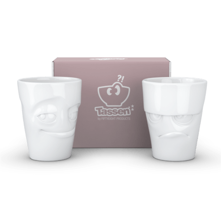 Becher Set „Grummelig & Verschmitzt“ ohne Henkel in weiß, 350 ml.
