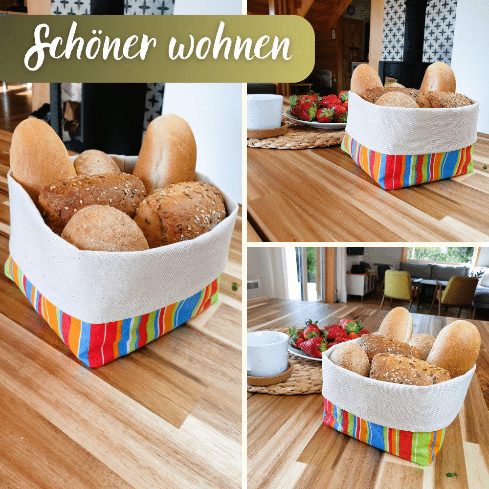 Und dazu können Sie die Brottasche zum Einkaufen mitnehmen oder auf Ihrem Tisch als Brotkorb benützen.