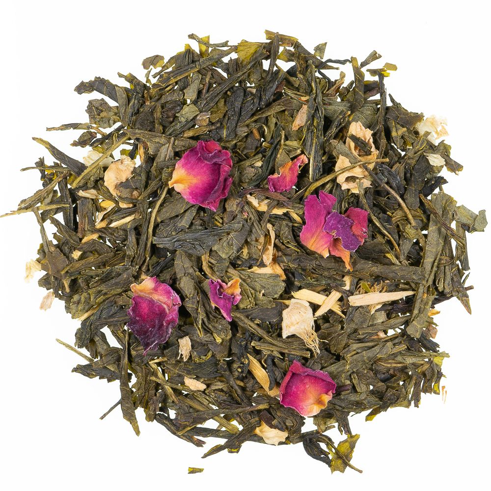 Zutaten: Grüner Tee China Sencha, Potenzholz, Aroma, Pao Chung Pou Chong, Xia Zhou Bi Feng, Zitronenschalen(2%), Rosenblütenblätter, Kaktusblüten(0,5%)
