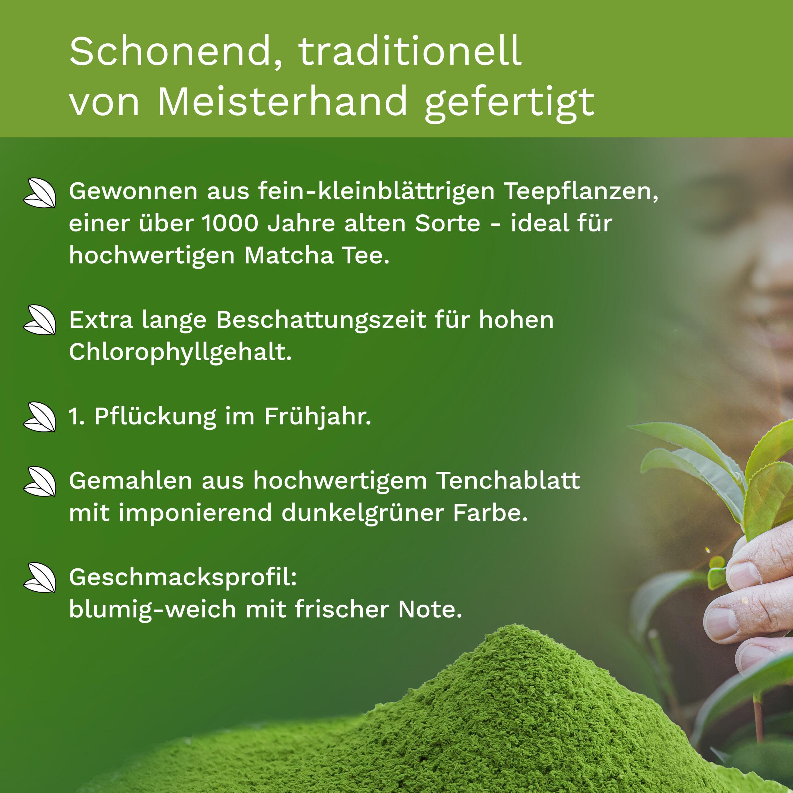 - Hochwertiger Bio-Matcha: Aus kontrolliert biologischem Anbau, glutenfrei und ohne Pestizide oder künstliche Zusätze.