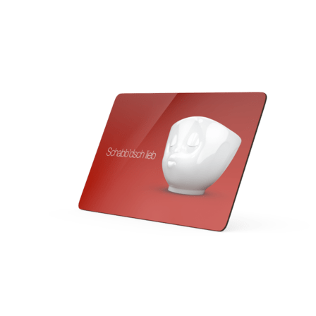 Das Motiv „Schabb’dsch lieb“, rot aus der TASSEN-Serie der guten, alten Schnittenbrettchen, bzw. Frühstücksbrettchen.