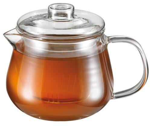 - Teekanne 400 ml aus Glas mit Glasdeckel und integriertem Griff und Sieb aus 18/8-Edelstahl.