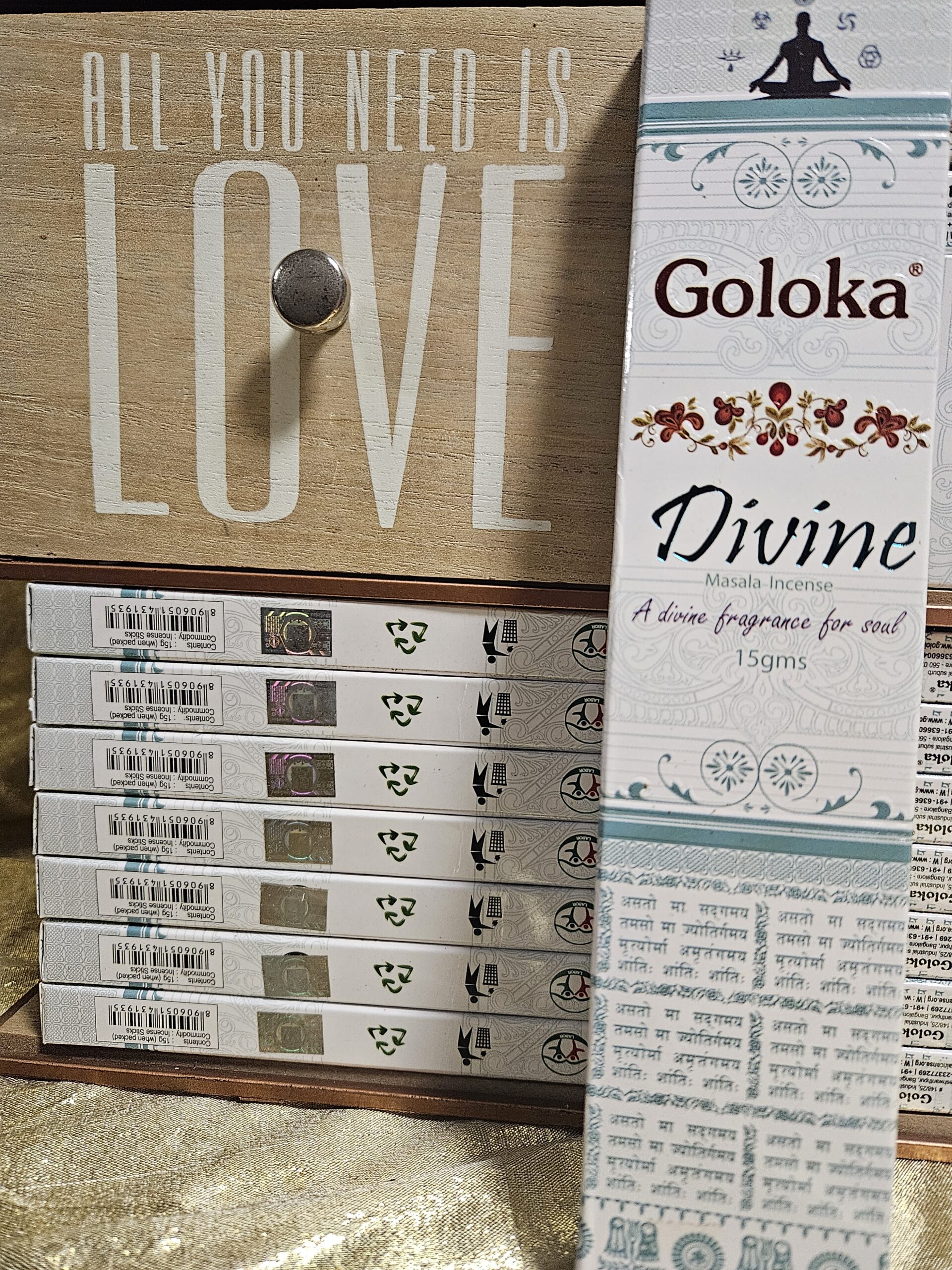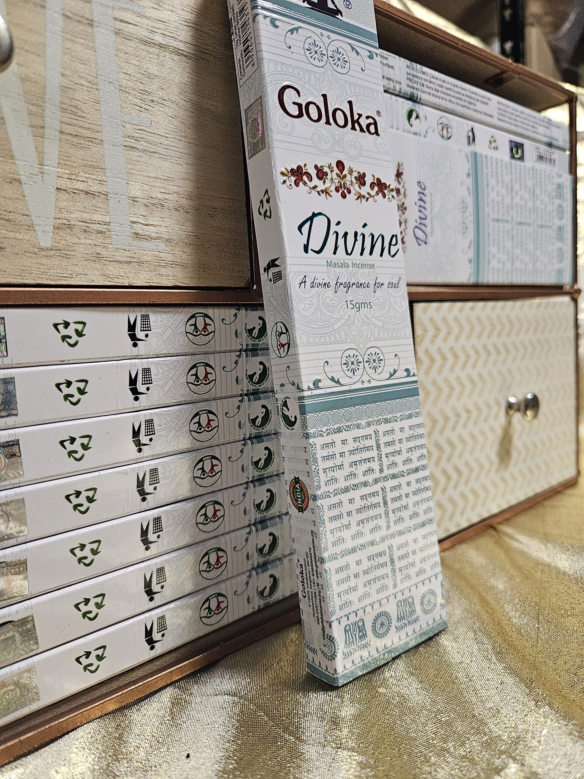 Goloka Divine ist eine einzigartige Mischung aus seltenen Kräutern, Blumen, Honig, Harzen und Ölen. Diese Inhaltsstoffe wirken sich positiv auf Yoga, Entspannung und Meditation aus und verbessern das Raumklima. Die Räucherstäbchen sind bekannt für ihren frischen, blumigen Duft, der die Raumatmosphäre aufhellt und sich ideal für spirituelle Rituale eignet.