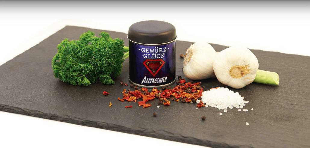 Unser Alltagsheld ist also jemand, der den großen und kleinen Stolpersteinen in der Küche trotzt, sich nicht unterkriegen lässt und dir am Ende der „Küchenschlacht“ ein Lächeln auf die Lippen zaubert. Er ist zur Stelle wenn dich mal wieder die Ratlosigkeit beim Kochen überkommt und du nicht weiter weißt. Der Alltagsheld verleiht deinen Gerichten stets das nötige Extra und weiß so mit alltäglichen Zutaten wie Petersilie, Zwiebel, Pfeffer oder Knoblauch zu überzeugen.