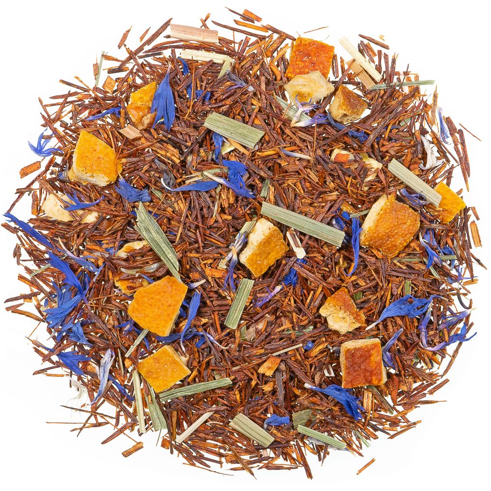 Zutaten: Rooibos, Orangenschalen(12%), natürliches Aroma, Lemongras, Kornblumenblüten