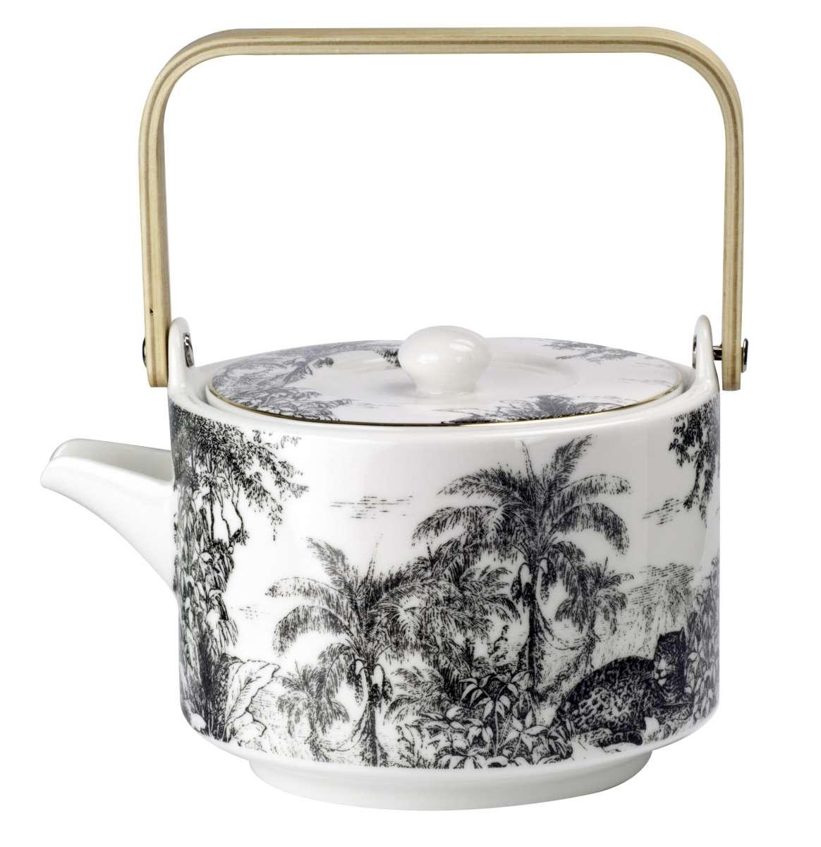 Porzellan Teekanne 800 ml mit goldfarbenem Rand in Geschenkverpackung