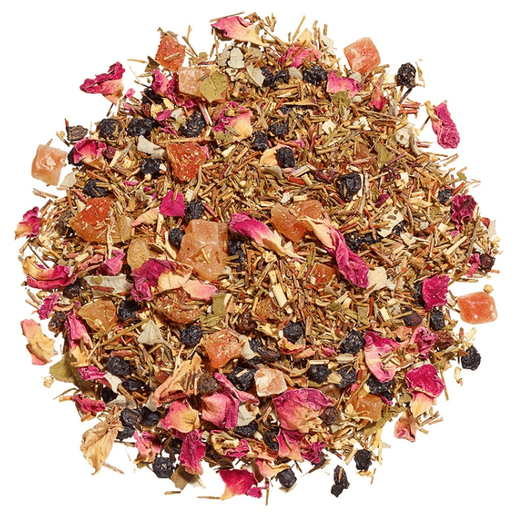 Durch den milden, grünen Rooibos entfaltet sich ein facettenreicher Geschmack. Blüten und Blätter geben Farbe und Frische; das Aroma der seltenen Maquibeere ist das Besondere..
