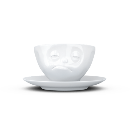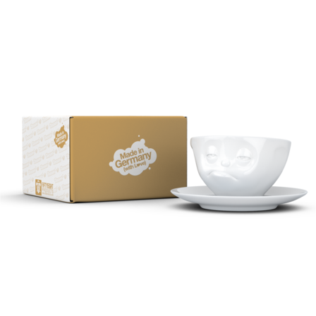 Etwas überwältigt schaut unsere neue 200 ml Tasse „Verpennt“ in die Welt – von wegen: „Ich brauch erst mal einen Kaffee, sonst geht hier nix!“. So sorgt die verpennte Tasse sicher für Heiterkeit am Frühstückstisch, auch wenn man noch nicht voll und ganz wach ist.