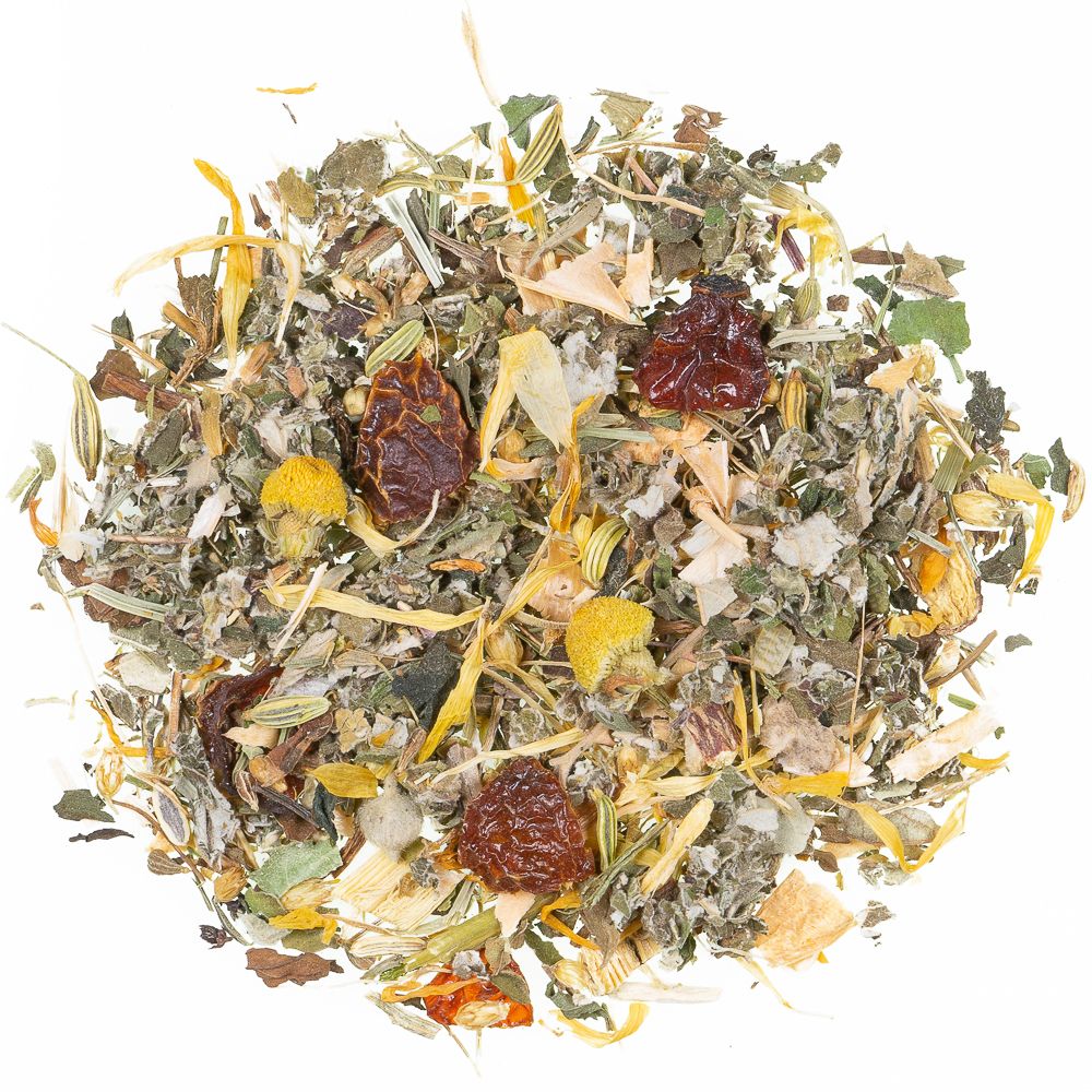 Zutaten: Himbeerblätter, Fenchel, Süßholzwurzel, Anis, Bohnenschalen, Hagebuttenschalen, Pfefferminzblätter, Johanniskraut, Brombeerblätter, Schafgarbenkraut, Brennnesselblätter, Kamillenblüten, Holunderbeeren, Quendelkraut, Schachtelhalmkraut, Löwenzahnkraut, Ringelblumenblüten, Rosmarinblätter, Thymian Hinweis: Enthält Süßholz – bei hohem Blutdruck sollte ein übermäßiger Verzehr dieses Erzeugnisses vermieden werden.